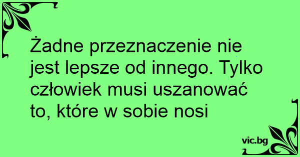 Żadne przeznaczenie nie jest lepsze od innego. Tylko człowiek musi uszanować to, które w sobie nosi