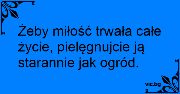 Żeby miłość trwała całe życie, pielęgnujcie ją starannie jak ogród.
