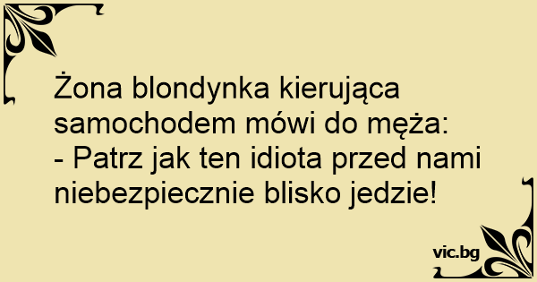 - Patrz jak ten idiота przed nami niebezpiecznie blisko jedzie!