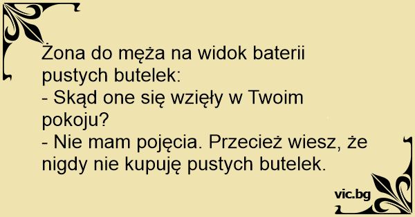 - Nie mam pojęcia. Przecież wiesz, że nigdy nie kupuję pustych butelek.