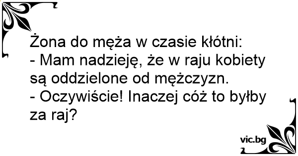 - Mam nadzieję, że w raju kobiety są oddzielone od mężczyzn.