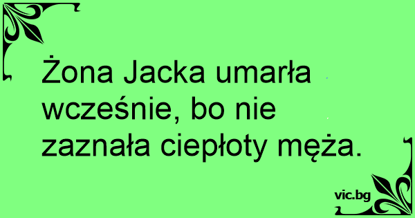 Żona Jacka umarła wcześnie, bo nie zaznała ciepłoty męża.