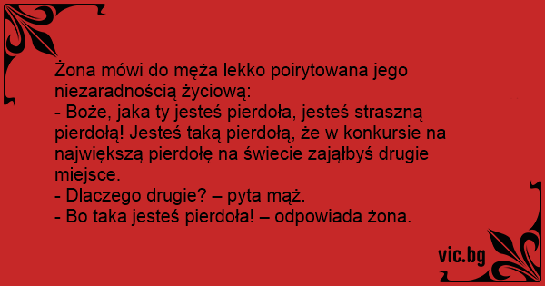 - Bo taka jesteś pierdoła! – odpowiada żona.