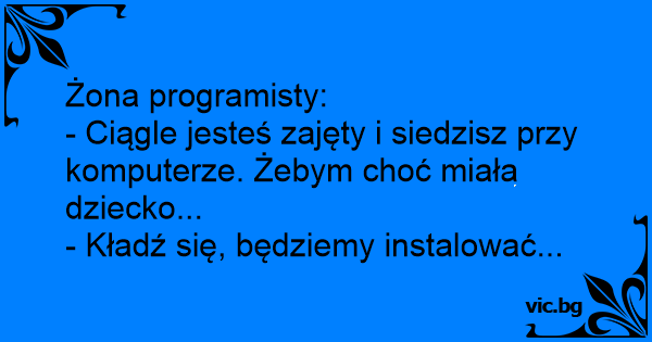 - Ciągle jesteś zajęty i siedzisz przy komputerze. Żebym choć miała dziecko...