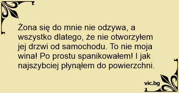 Żona się do mnie nie odzywa, a wszystko dlatego, że nie otworzyłem jej drzwi od samochodu. To nie moja wina! Po prostu spanikowałem! I jak najszybciej płynąłem do powierzchni.