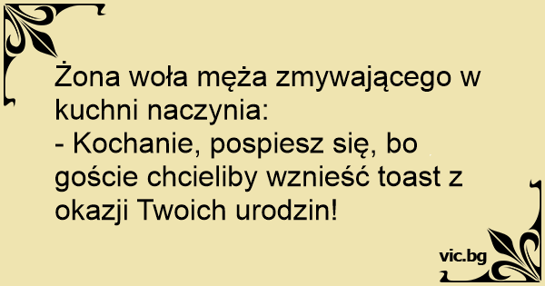 - Kochanie, pospiesz się, bo goście chcieliby wznieść toast z okazji Twoich urodzin!