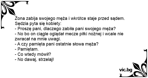 Żona zabija swojego męża i wkrótce staje przed sądem. Sędzia pyta się kobiety: