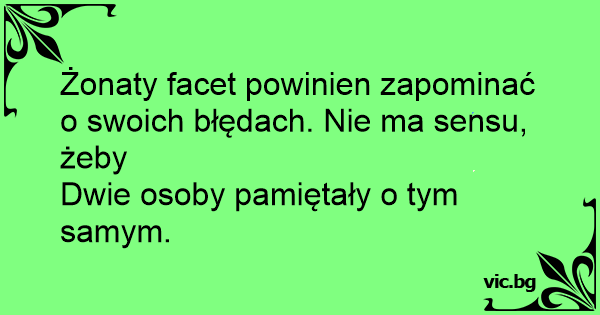 Żonaty facet powinien zapominać o swoich błędach. Nie ma sensu, żeby
