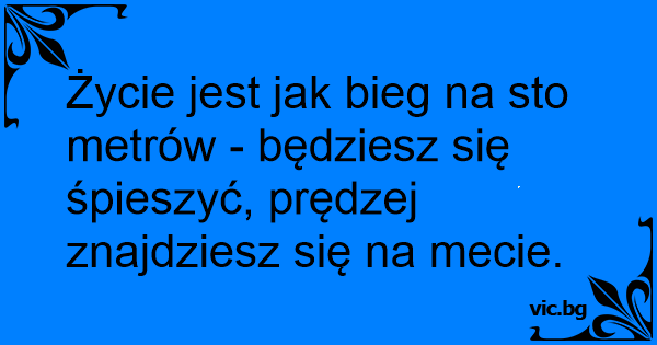 Życie jest jak bieg na sto metrów - będziesz się śpieszyć, prędzej znajdziesz się na mecie.