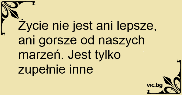 Życie nie jest ani lepsze, ani gorsze od naszych marzeń. Jest tylko zupełnie inne