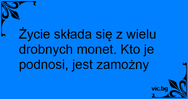Życie składa się z wielu drobnych monet. Kto je podnosi, jest zamożny
