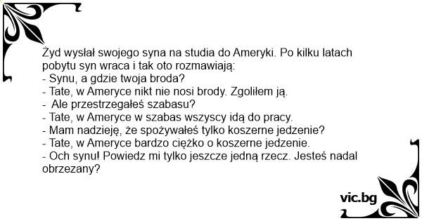 - Och synu! Powiedz mi tylko jeszcze jedną rzecz. Jesteś nadal obrzezany?