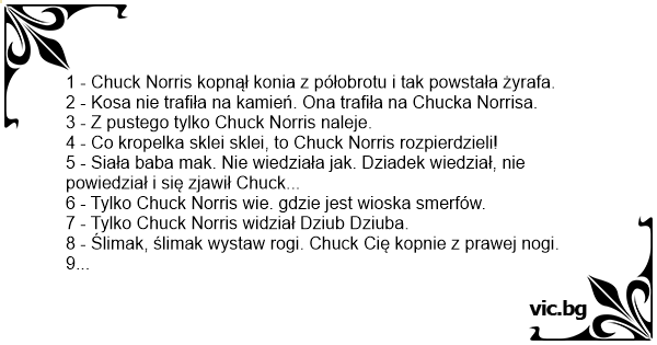 1 - Chuck Norris kopnął konia z półobrotu i tak powstała żyrafa.