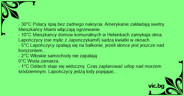 - 30°C Polacy śpią bez żadnego nakrycia. Amerykanie zakładają swetry. Mieszkańcy Miami włączają ogrzewanie.