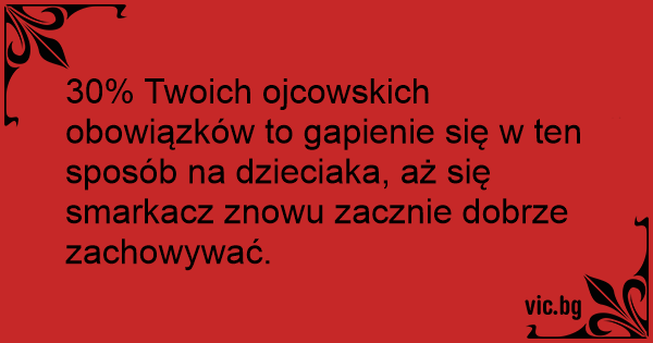 30% Twoich ojcowskich obowiązków to gapienie się w ten sposób na dzieciaka, aż się smarkacz znowu zacznie dobrze zachowywać.