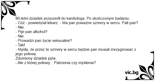 80-letni dziadek przyszedł do kardiologa. Po skończonym badaniu: