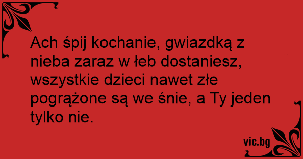Ach śpij kochanie, gwiazdką z nieba zaraz w łeb dostaniesz, wszystkie dzieci nawet złe pogrążone są we śnie, a Ty jeden tylko nie.
