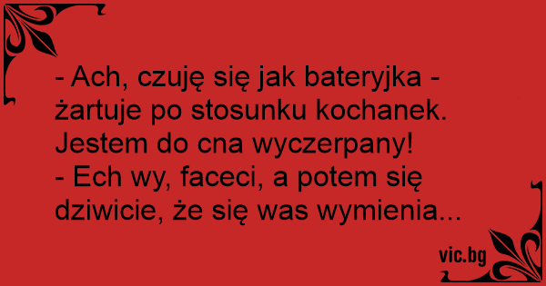- Ach, czuję się jak bateryjka - żartuje po stosunku kochanek. Jestem do cna wyczerpany!