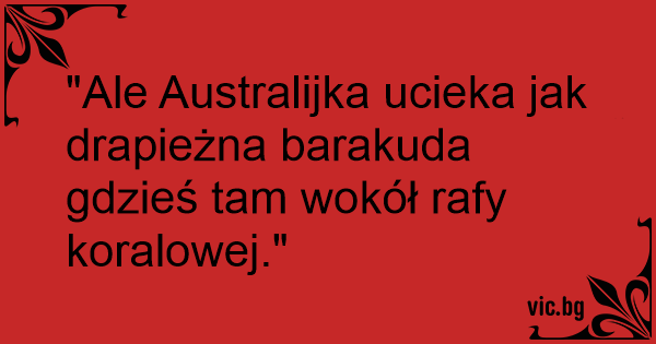 "Ale Australijka ucieka jak drapieżna barakuda gdzieś tam wokół rafy koralowej."