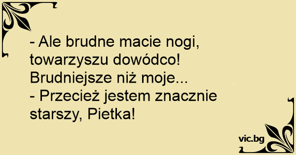 - Ale brudne macie nogi, towarzyszu dowódco! Brudniejsze niż moje...