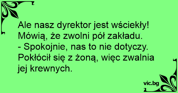 - Spokojnie, nas to nie dotyczy. Pokłócił się z żoną, więc zwalnia jej krewnych.