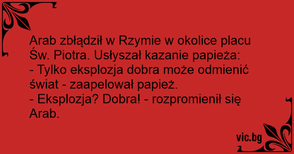 - Eksplozja? Dobra! - rozpromienił się Arab.