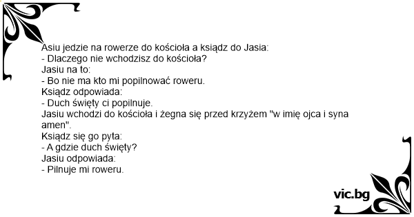 Asiu jedzie na rowerze do kościoła a ksiądz do Jasia:
