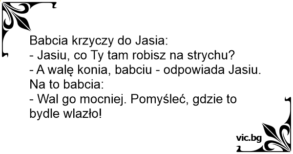 - A walę konia, babciu - odpowiada Jasiu.