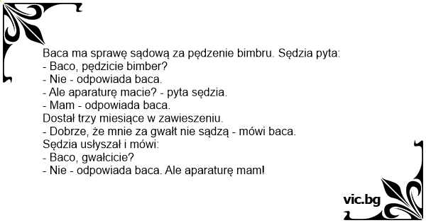 Baca ma sprawę sądową za pędzenie bimbru. Sędzia pyta: