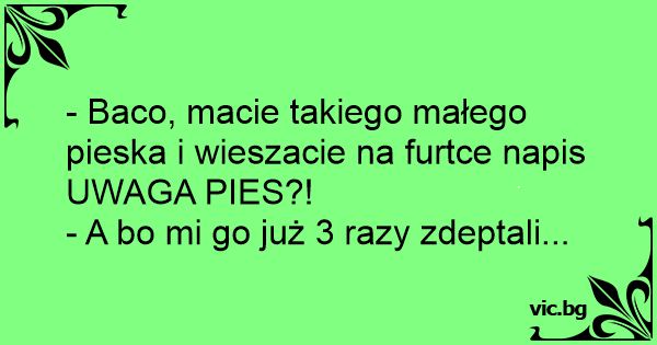 - Baco, macie takiego małego pieska i wieszacie na furtce napis UWAGA PIES?!