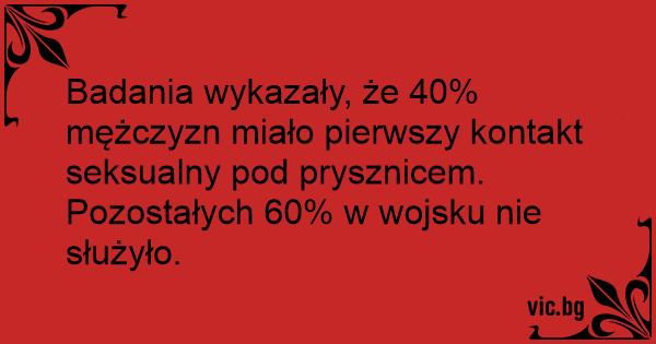 Badania wykazały, że 40% mężczyzn miało pierwszy kontakt seksualny pod prysznicem. Pozostałych 60% w wojsku nie służyło.