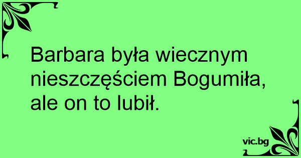Barbara była wiecznym nieszczęściem Bogumiła, ale on to lubił.