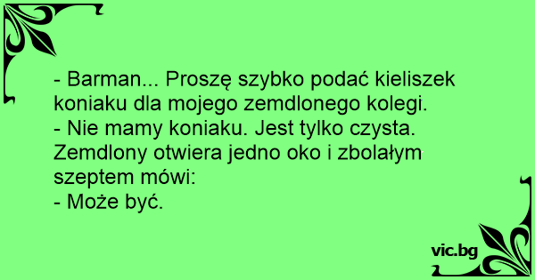 - Barman... Proszę szybko podać kieliszek koniaku dla mojego zemdlonego kolegi.