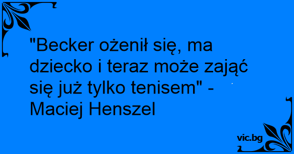 "Becker ożenił się, ma dziecko i teraz może zająć się już tylko tenisem" - Maciej Henszel
