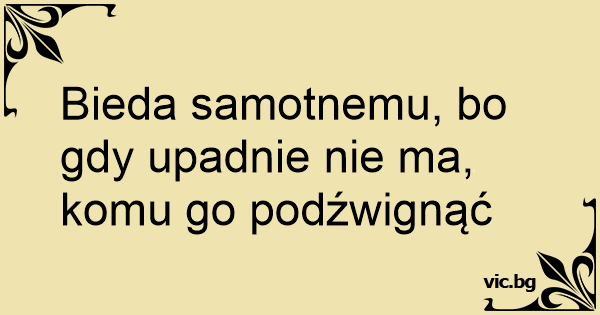 Bieda samotnemu, bo gdy upadnie nie ma, komu go podźwignąć