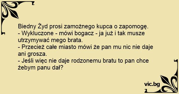 - Wykluczone - mówi bogacz - ja już i tak musze utrzymywać mego brata.