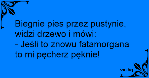 Biegnie pies przez pustynie, widzi drzewo i mówi:
