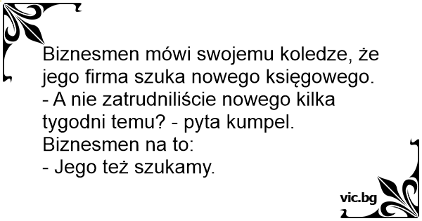 Biznesmen mówi swojemu koledze, że jego firma szuka nowego księgowego.