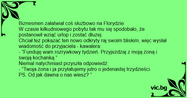 - ”Funduję wam rozrywkowy tydzień. Przyjeżdżaj z moją żoną i swoją kochanką.”
