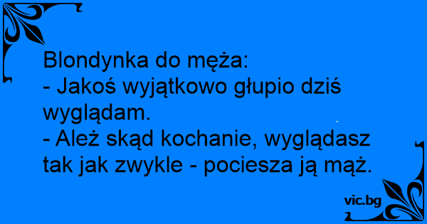 - Ależ skąd kochanie, wyglądasz tak jak zwykle - pociesza ją mąż.