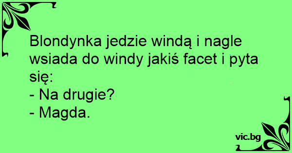 Blondynka jedzie windą i nagle wsiada do windy jakiś facet i pyta się: