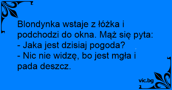 Blondynka wstaje z łóżka i podchodzi do okna. Mąż się pyta: