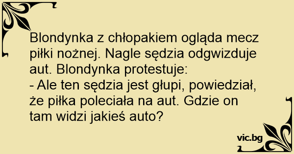 - Ale ten sędzia jest głupi, powiedział, że piłka poleciała na aut. Gdzie on tam widzi jakieś auto?