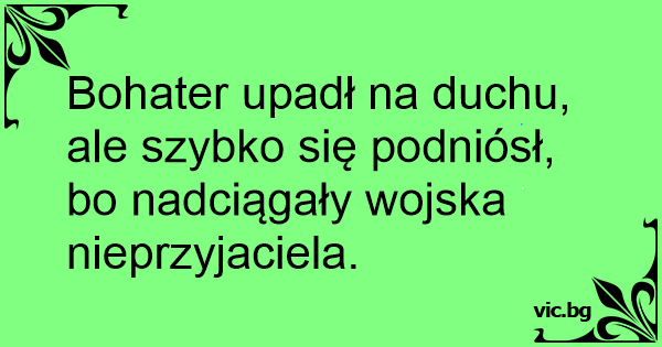Bohater upadł na duchu, ale szybko się podniósł, bo nadciągały wojska nieprzyjaciela.