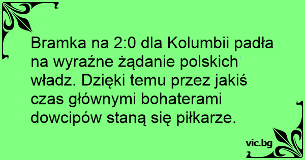 Bramka na 2:0 dla Kolumbii padła na wyraźne żądanie polskich władz. Dzięki temu przez jakiś czas głównymi bohaterami dowcipów staną się piłkarze.