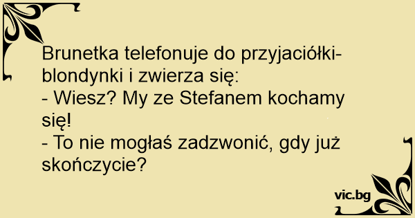Brunetka telefonuje do przyjaciółki-blondynki i zwierza się: