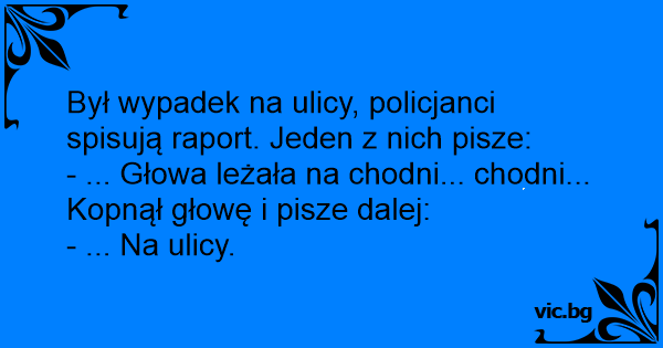 Był wypadek na ulicy, policjanci spisują raport. Jeden z nich pisze:
