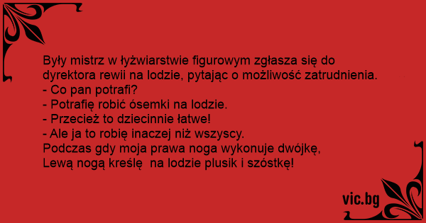 Były mistrz w łyżwiarstwie figurowym zgłasza się do dyrektora rewii na lodzie, pytając o możliwość zatrudnienia.