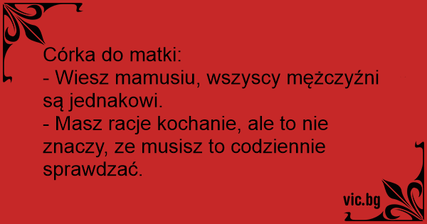 - Wiesz mamusiu, wszyscy mężczyźni są jednakowi.