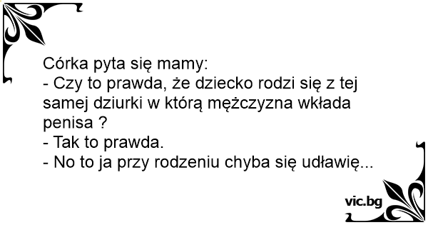 - Czy to prawda, że dziecko rodzi się z tej samej dziurki w którą mężczyzna wkłada penisa ?